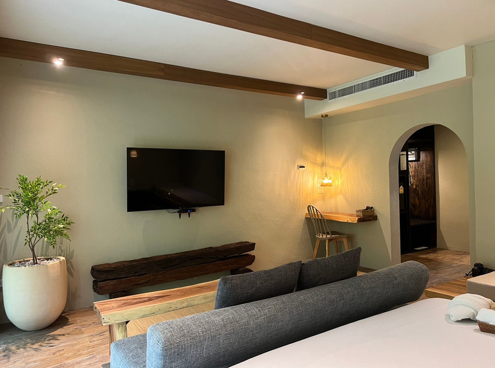 สัมผัสธรรมชาติอย่างใกล้ชิดตกแต่งด้วยโทนไม้ดูอบอุ่น พร้อมความสะดวกสบายครบครัน เหมาะกับคู่รักหรือครอบครัวที่ต้องการห้องที่มีพื้นที่ พร้อมโต๊ะทำงานและมุมโซฟาปลายเตียงสำหรับรับชมโทรทัศน์แบบ Smart TV อยู่สบาย ไม่อึดอัด มีทั้งหมด 2 ห้อง ตั้งอยู่ชั้น 1 และ ชั้น 2 ของอาคารที่พักเรา รองรับผู้เข้าพักได้ 3 ท่าน และสามารถเสริมเพิ่มได้อีก 1 ท่าน